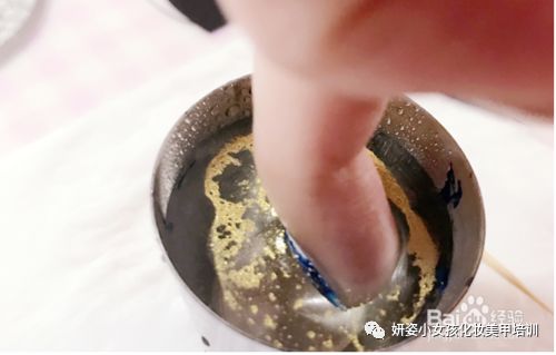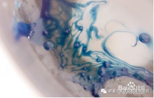 滴一滴金色印油在水面,这个金色甲油扩散的很快,不需要墩杯子。